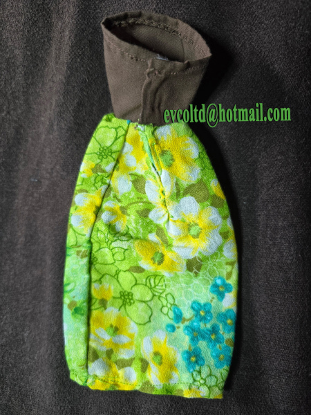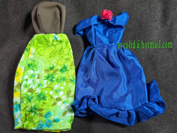 These dresses are designed to Barbie specifications and fits many dolls of a similar size. It is made from over 95% remnant materials. They are individually made, machine and partially handstitched.