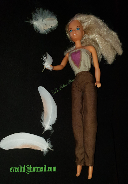 This jumper is designed to Barbie specifications and fits many dolls of a similar size. It is made from over 98% remnant or recycled materials. They are individually made, machine and largely handstitched.