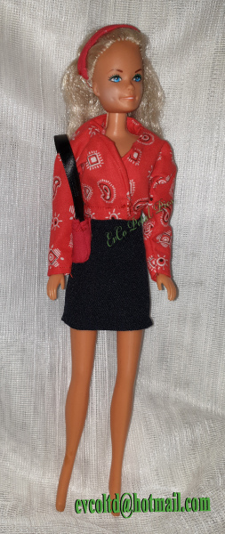 This Handbag and Headband are designed to Barbie specifications and fits many dolls of a similar size. The handbag is made from over 2/3 remnant material and recycled strap, with the headband comprising of 1/3 new elastic and remnant material. They are individually made and predominantly individually machine sewn.