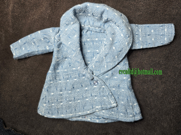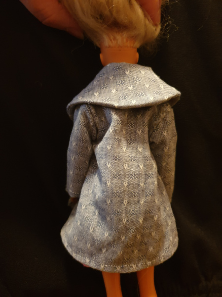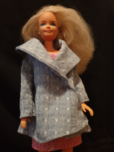 This jumper is designed to Barbie specifications and fits many dolls of a similar size. It is made from over 98% remnant or recycled materials. They are individually made, machine and largely handstitched.