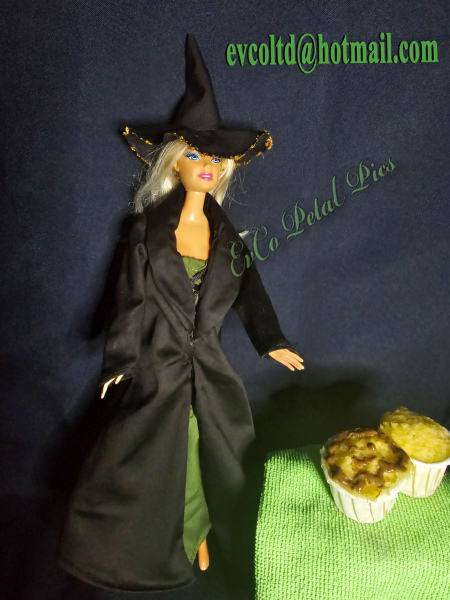 The witch Costume is designed to Barbie specifications and fits many dolls of a similar size. It is made from 100% remnant materials. They are individually made.