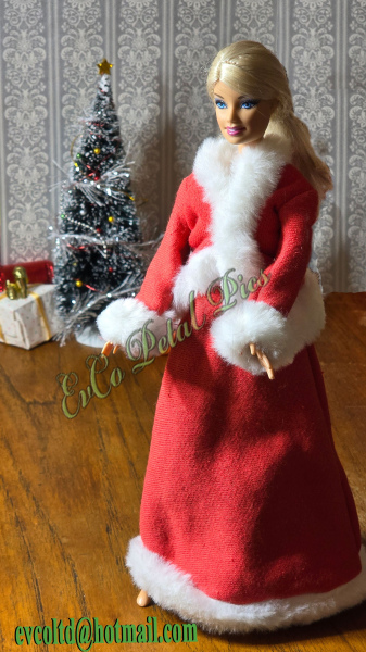 This costume is designed to Barbie specifications and fits many dolls of a similar size. It is made from over 95% remnant materials. They are individually made, machine and partially handstitched.