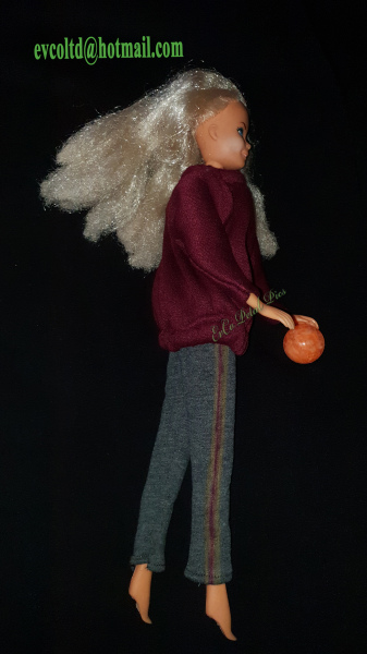 This jumper is designed to Barbie specifications and fits many dolls of a similar size. It is made from over 98% remnant or recycled materials. They are individually made, machine and largely handstitched.